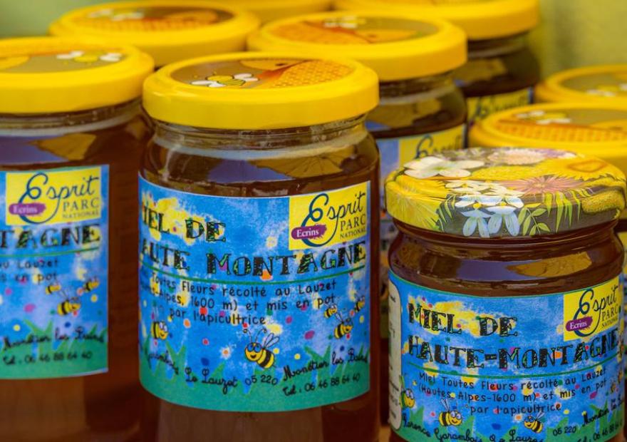 Our bees produce a variety of honeys in the region, all with the Organic Agriculture label, including a high-mountain honey marketed under the Esprit Parc des Écrins brand.